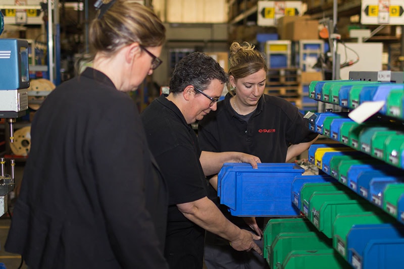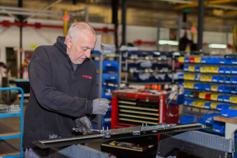 L’ensemble des personnes travaillant sur ces lignes ont une grande maîtrise de la technique de fabrication des portes d’ascenseurs. L’ancienneté moyenne de près de 20 ans témoigne de leur grande expertise dans ce domaine. Chaque personne possède un niveau de compétences multiples lui permettant d’intégrer plusieurs lignes, ce qui contribue pleinement à la souplesse de l’outil de fabrication.