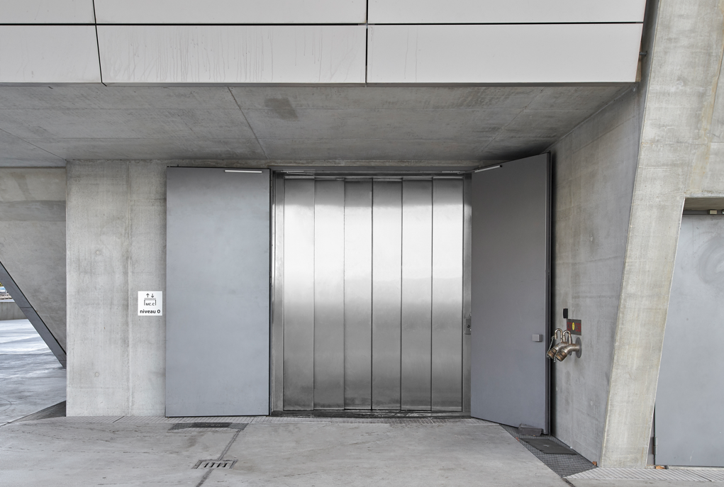 C’est également la porte parfaite pour équiper un monte charge et pour des passages très larges grâce à ses nombreuses possibilités en terme de vantaux.